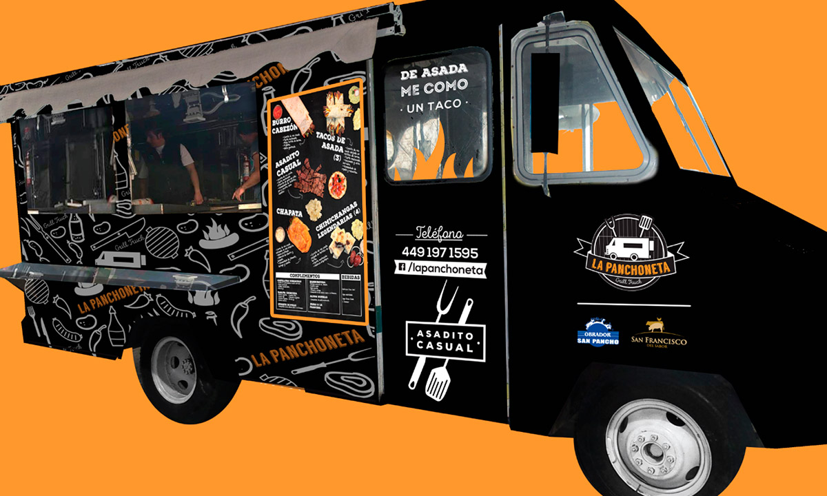 La Panchoneta Grill Truck – "Asadito Casual" es una propuesta desenfadada para aquellos que gustan de platillos hechos a la parrilla. En Makebrand desarrollamos el branding de esta deliciosa food truck, creamos el nombre comercial, slogan y aplicaciones gr´ficas como son tarjetas de presentación, menús y food wrap. Capturamos en sesiones fotográficas los platillos que deleitan a sus consumidores y le dimos color al principal activo "una camioneta que lleva el asadito casual por las calles de la Ciudad de Aguascalientes".